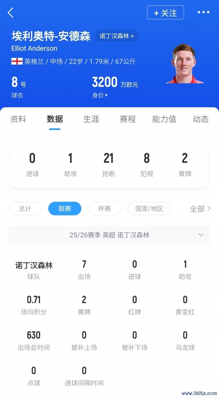 现年22岁的安德森于2024年以3500万镑从纽卡转会至诺丁汉丛林,如今已成长为英超最看护的新星之一。