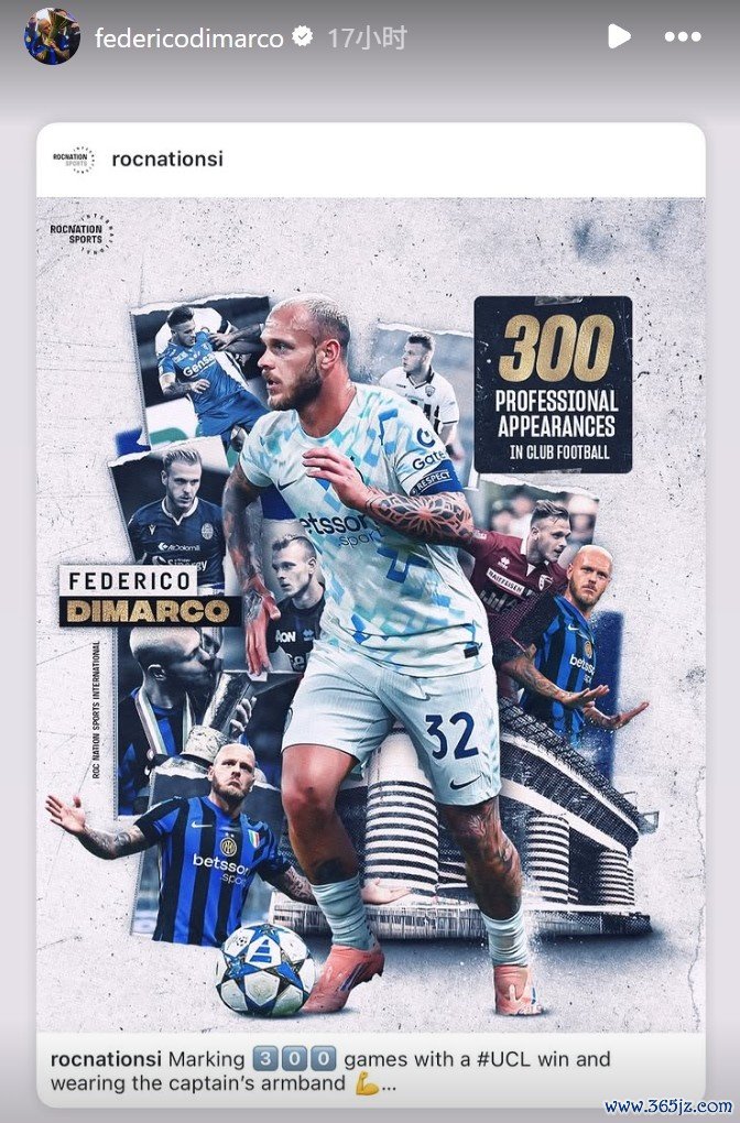 10月22日讯 国米在本轮欧冠4-0轻取圣罗吉斯,迪马尔科替补登场。数据统计裸露,这亦然他俱乐部糊口的300场里程碑。