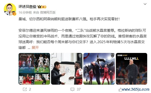 10月30日讯 联赛杯界限多场对阵,其中利物浦惨败于水晶宫,无缘晋级。赛后评论员詹俊发文。