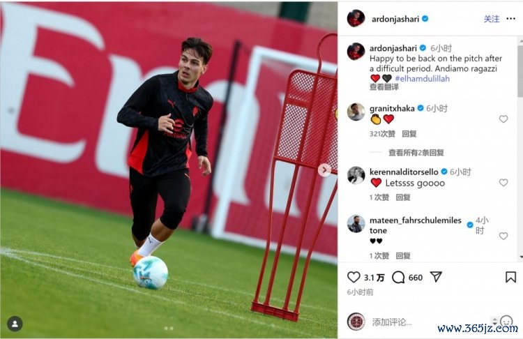 亚沙里社媒晒出西席像片,并写说念:“很精炼在渡过一段贫窭本领之后重返球场,加油兄弟们!”