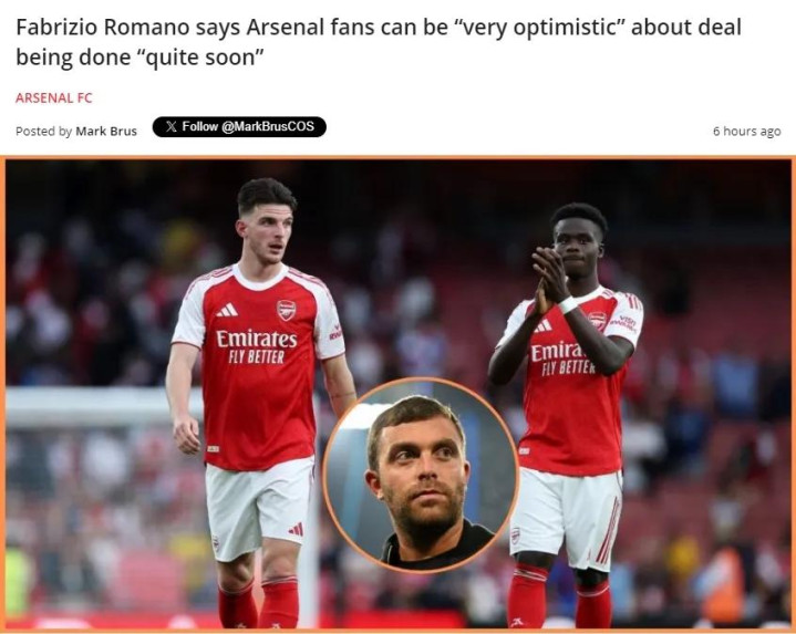 罗马诺在YouTube中线路,阿森纳续约萨卡仅仅时辰问题。