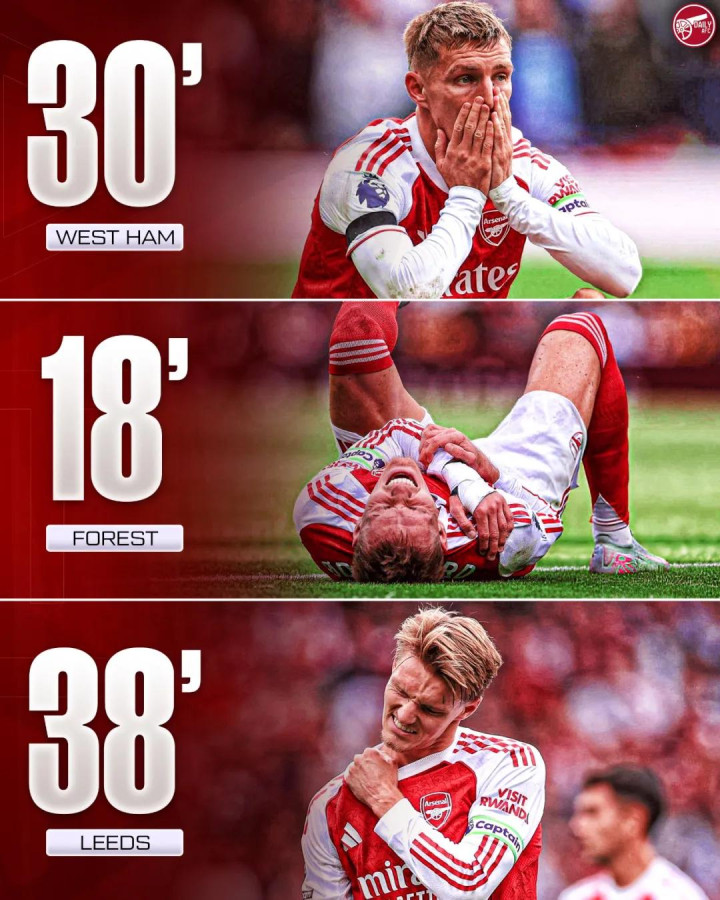 Opta统计,厄德高成为了英超历史上第一位贯穿3场英超比赛首发出场但却在半场之前被替换下场的球员……