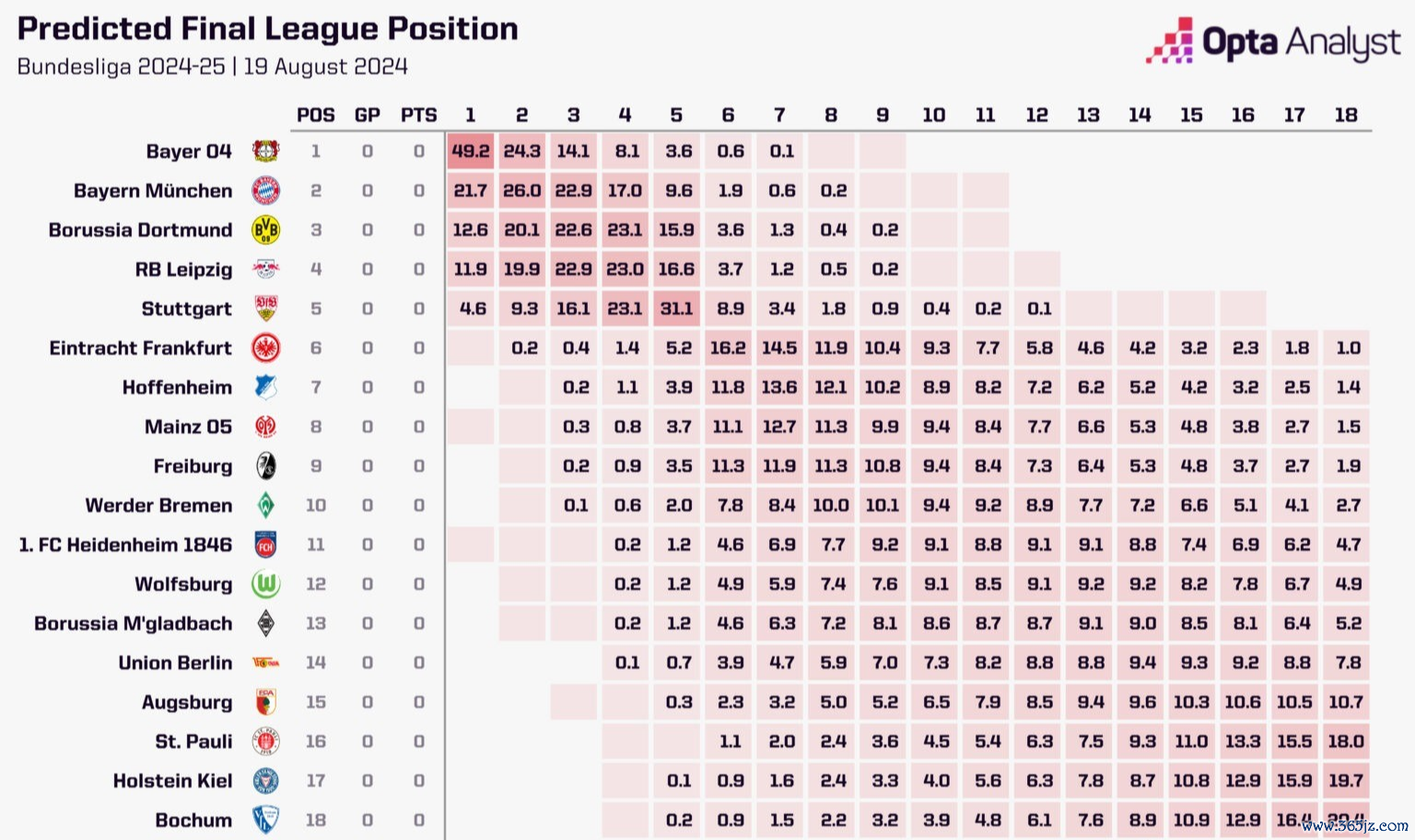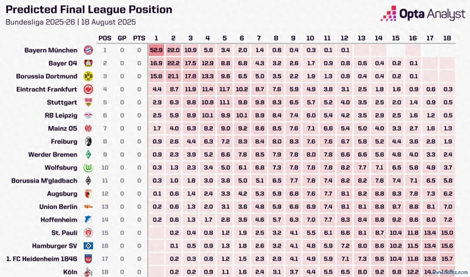 是以按照老例,Opta也发布了新赛季德甲的全面瞻望来为德甲联赛预热。