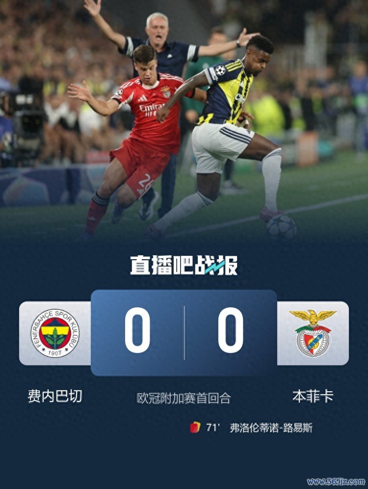 直播吧8月21日讯 欧冠附加赛首回合,费内巴切镇守主场萨拉克格鲁球场迎战本菲卡。上半场,阿克图尔科格鲁随便球被扑。易边再战,弗洛伦蒂诺-路易斯两黄被罚下,恩内斯里补射被吹。最终费内巴切0-0本菲卡。两边次回合将在28日凌晨移师本菲卡主场。