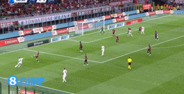 第45+1分钟,泽尔宾与萨勒马科尔斯回击后倒地,萨勒马科尔斯左路内切后直塞,埃斯图皮尼安下底传中,后点后卫帕夫洛维奇头球攻门成功,AC米兰1-1克雷莫内塞。