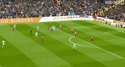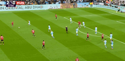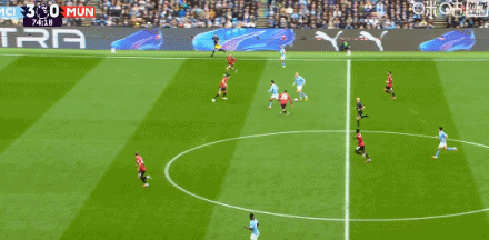 事实上,上半场曼城的主要攻势都是打得曼联归并个空当:后腰失位时,边中卫上抢补防,然后球传到了曼联边中卫身后。