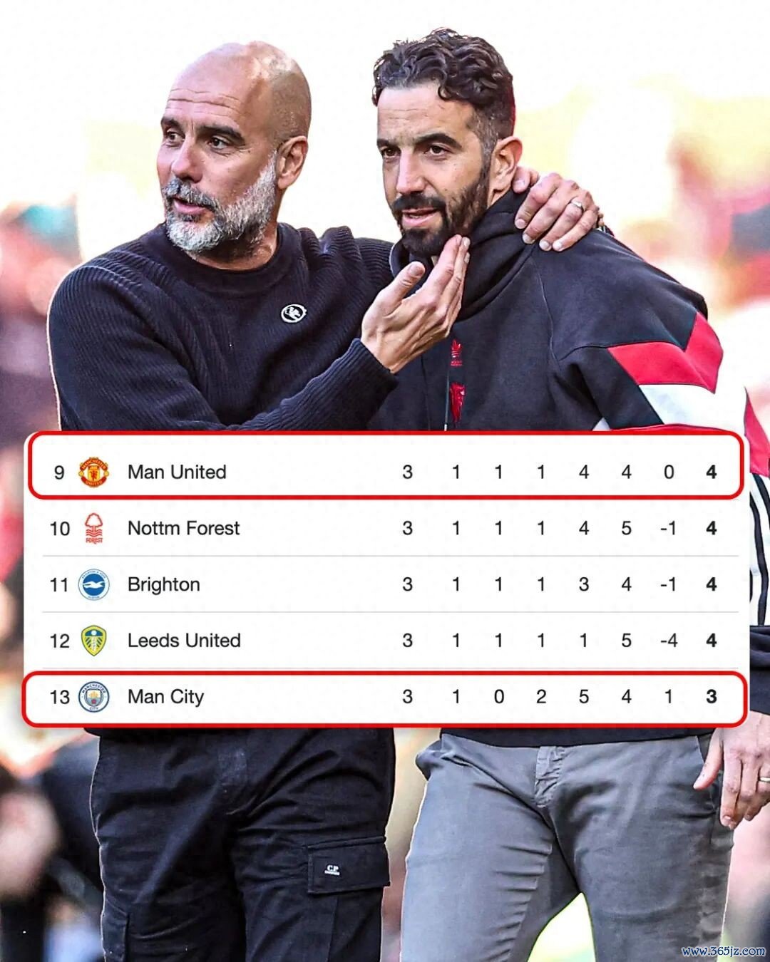 本场之前,曼联3轮比赛积4分,曼城3轮比赛积3分,两大朱门就这样丽都丽的鄙人半区相逢,然后海外比赛日还又伤了几个,主打一个一方有难八方添乱。