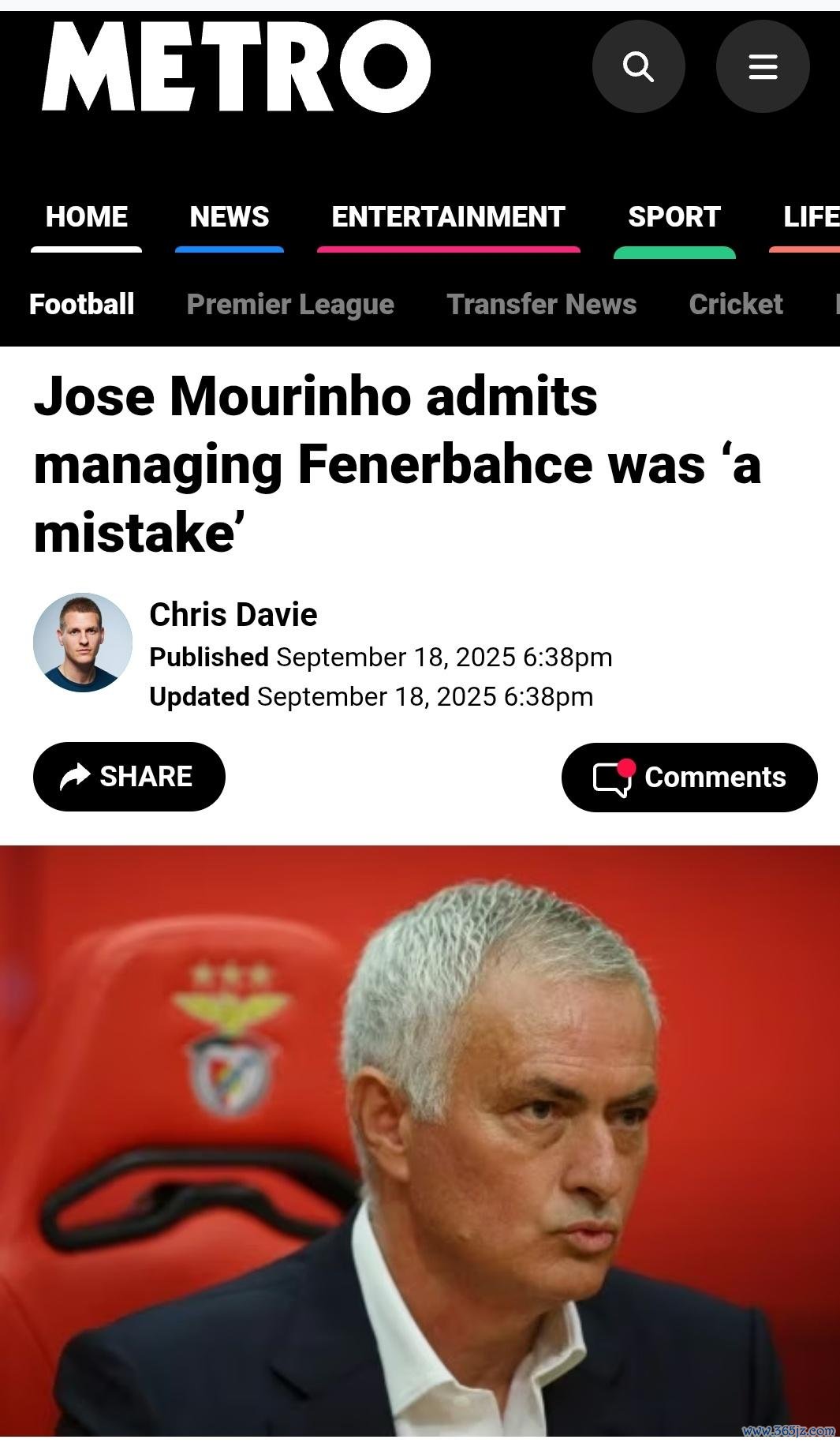 62岁的葡萄经纪东说念主穆里尼奥被以为是天下足坛顶级名帅之一,他的造就生计共夺得包括两个欧冠在内的26座冠军奖杯,但自从2021年以来,他先后握教了意甲中游的罗骑兵和土耳其联赛的费内巴切队,获利平平,均被半途解约。