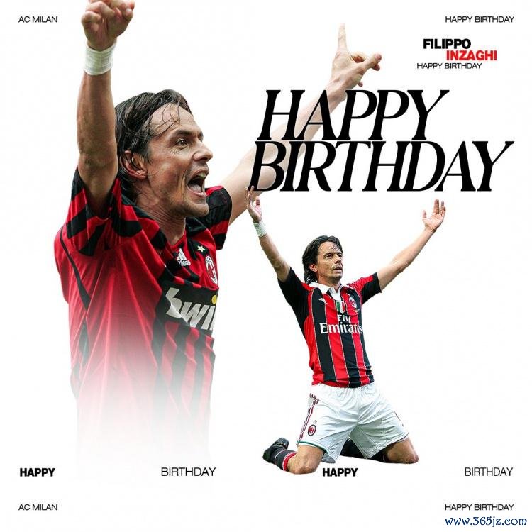 直播吧8月9日讯 今天是意大利足坛名宿因扎吉的52岁诞辰,老东家米兰为他奉上道喜。