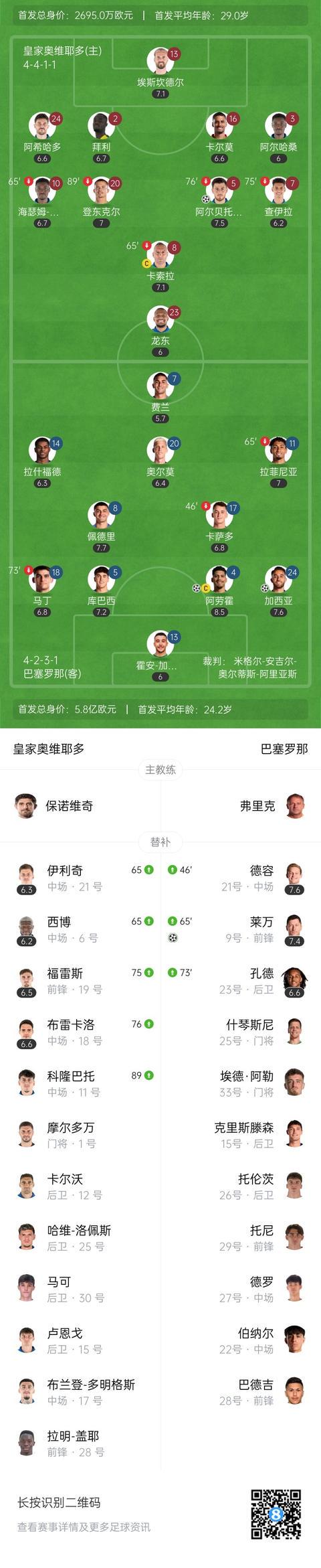 下半场补时5分钟。最终全场比赛扫尾,皇家奥维耶多1-3巴萨。