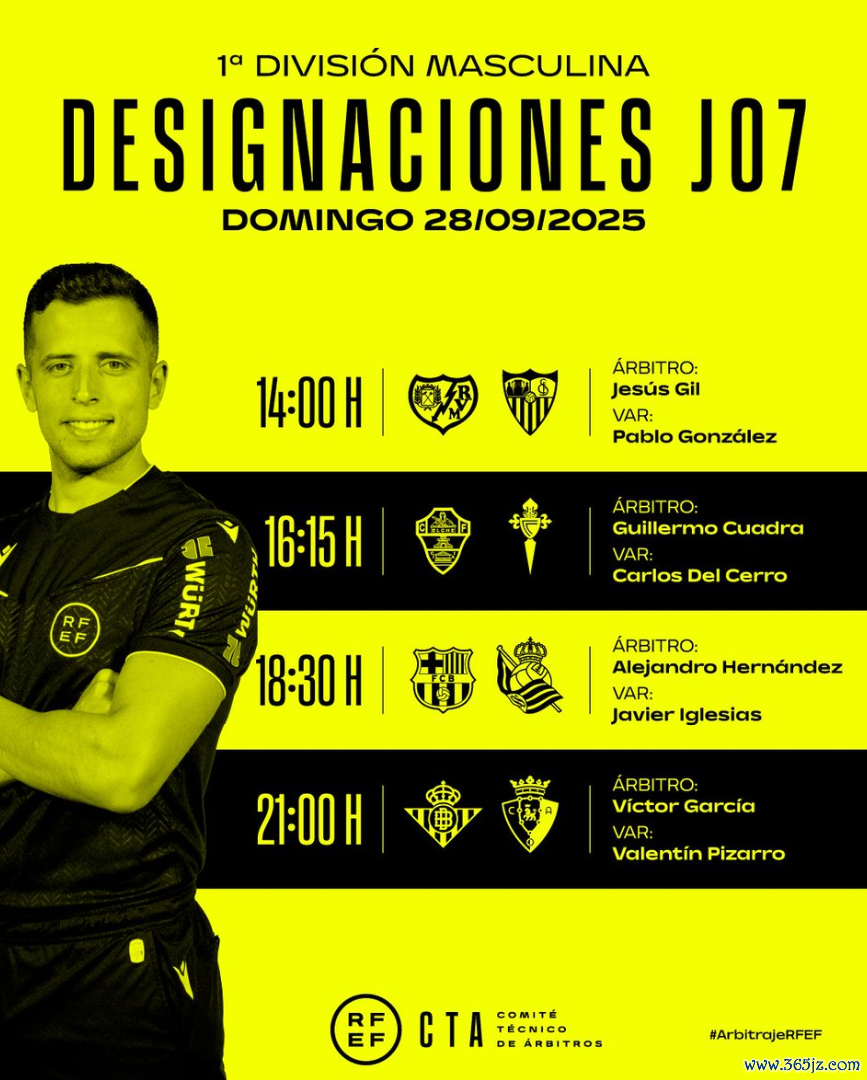 雷速体育9月27日讯 西甲第7轮,巴塞罗那将主场对阵皇家社会。赛前西甲官方公布了本场比赛的法律讲授裁判组,其中埃尔南德斯·埃尔南德斯将担任本场比赛的主裁判,VAR裁判将由哈维尔-伊格莱西亚斯担任。