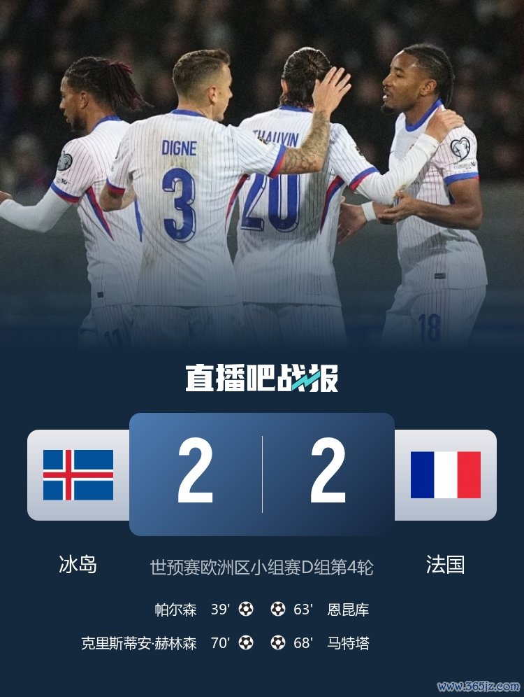 法国脉轮世初赛2-2战平冰岛,本场恩昆库、马特塔进球。
