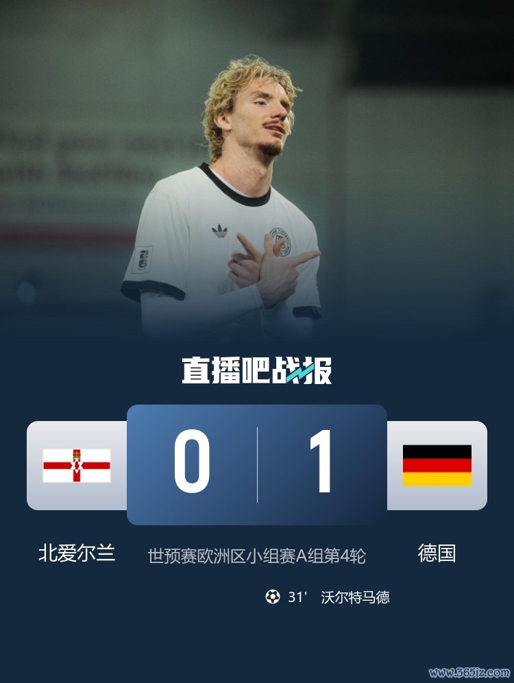 世初赛德国挑战北爱尔兰,沃尔特马德头球破门,下半场阿德耶米失单刀,德国1-0北爱尔兰得回三连胜。