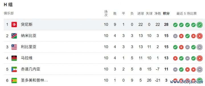 世初赛非洲区小组赛H组今天适度了临了一轮的沿路较量,最终突尼斯以10轮28分,进22球失0球的无解战绩小组第一收官。