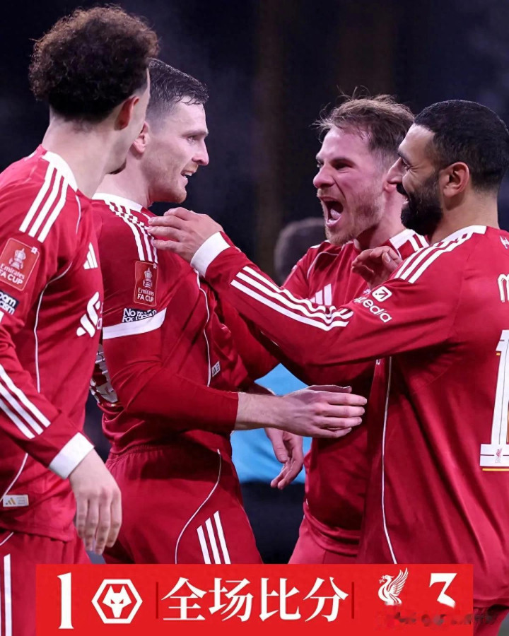 莫利纽体育场的比赛结束,利物浦3-1完胜狼队,用一场酣畅复仇锁定足总杯八强席位。罗伯逊传球与射门配合建功,萨拉赫、琼斯先后破门,67%掌停配合的控制权率、20脚踢门的绝对压制,看似是一场救赎之战,却难掩红军内部的暗流涌动。这场胜利,究竟是绝境反弹的起点,还是掩盖矛盾的假象?罗伯逊的逆袭、斯洛特的争议、红军的未来,都藏在这场足球得分情况背后。