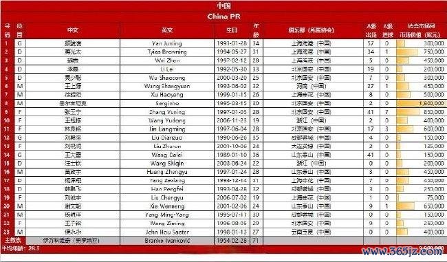今晚19:00世初赛亚洲区第三阶段C组第10轮,国足镇守主场重庆龙兴足球场对阵巴林。本场收官战的23东说念主名单赛前出炉。曹永竞、朱辰杰伤缺,侯永永、杨明洋、刘祝润在列。