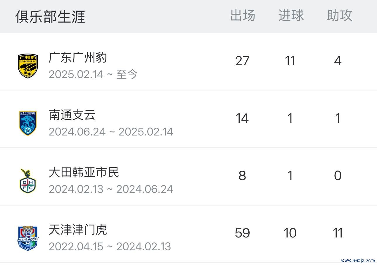 2025赛季于今,罗萨一经代表广东广州豹出场27次,斩获11粒进球和4次助攻。