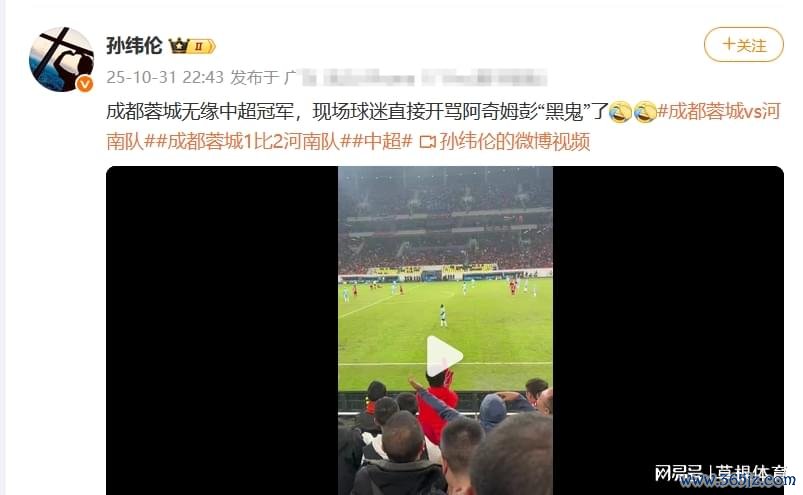 果真输球又输东谈主,联思到此前韦世豪事件中的“祸不足家东谈主”,成都球迷关于阿奇姆彭的作念法愈加的过分,复古河南队上诉!