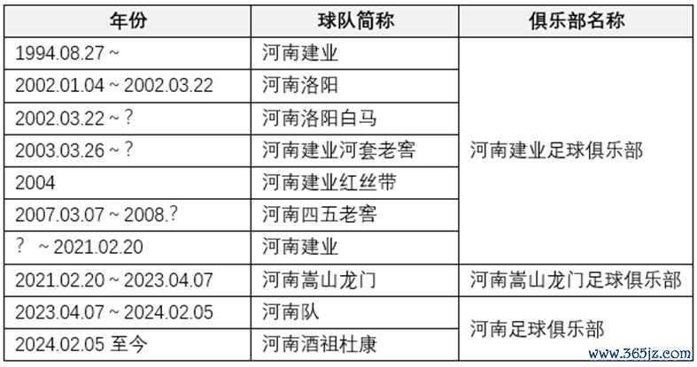 参考尊府维基百科:河南足球俱乐部英文维基百科:Henan F.C.百度百科:河南足球俱乐部河南建业足球俱乐部微信公众号.官宣!河南建业足球俱乐部认真改名为“河南嵩山龙门足球俱乐部”[Z/OL].大河网.(2021.02.20).https://news.dahe.cn/2021/02-20/802655.html.王玮皓.大河网.河南建业认真改名为“河南嵩山龙门” 郑州、洛阳、建业三分股权[Z/OL].中国网.(2021.02.22).http://henan.china.com.cn/2021-02/22/content_41473559.htm.扬子晚报.河南嵩山龙门队要改回原名“河南建业”?真相正本是这么[Z/OL].新浪体育.(2021.08.04).https://k.sina.com.cn/article_1653603955_628ffe73020015608.html.新浪体育.河南嵩山龙门改名为河南足球俱乐部,河南建业或永成历史[Z/OL].球天下.(2023.04.07).https://www.qtx.com/csl/185693.html.新华网.河南建业足球队再次变更主场 迁至九朝古皆洛阳[Z/OL].搜狐体育.(2002.01.04).https://sports.sohu.com/71/79/sports_news163937971.shtml.新华网.河南建业足球队再次变脸[Z/OL].新浪体育.(2002.03.22).https://sports.sina.com.cn/o/2002-03-22/22251134.shtml.《足球》报.河南建业冠名白马寺 洛阳球票价高仍遭疯抢[Z/OL].新浪体育.(2002.03.22).https://sports.sina.com.cn/b/2002-03-22/22250879.shtml.大河报.昨认真冠名河南建业河套老窖队 建业新赛季冠新名[Z/OL].新浪体育.(2003.03.26).https://sports.sina.com.cn/b/2003-03-26/1416413050.shtml.大河网-河南日报.“河南四五老窖”出生 河南建业队改披新战袍[Z/OL].搜狐体育.(2007.03.07).https://sports.sohu.com/20070307/n248562937.shtml.大圣.河南建业获四五千万冠名 联手精英拓展海外市集[Z/OL].搜狐体育.(2008.02.16).https://sports.sohu.com/20080216/n255189598.shtml.足球报.新推动亮相+冠名出炉!河南队招商开了好头,接下来场上见[Z/OL].腾讯网.(2024.02.29).https://news.qq.com/rain/a/20240229A026S800.河南日报. 酒祖杜康再次冠名河南足球俱乐部[Z/OL].(2025.02.27).https://newpaper.dahe.cn/hnrb/html/2025-02/27/content_19_1723650.htm.大象体育.只好河南,为到手而卓越——河南足球俱乐部认真启用全新队名及队徽[Z/OL].大象新闻.(2023.04.07).https://www.hntv.tv/rhh-2979460096/article/1/1644355448330711041.赵一闪专栏.建业足球旧事(3)之1997年冠名权风云[Z/OL].本日头条.(2021.03.21). https://www.toutiao.com/article/6941953681143333415/.